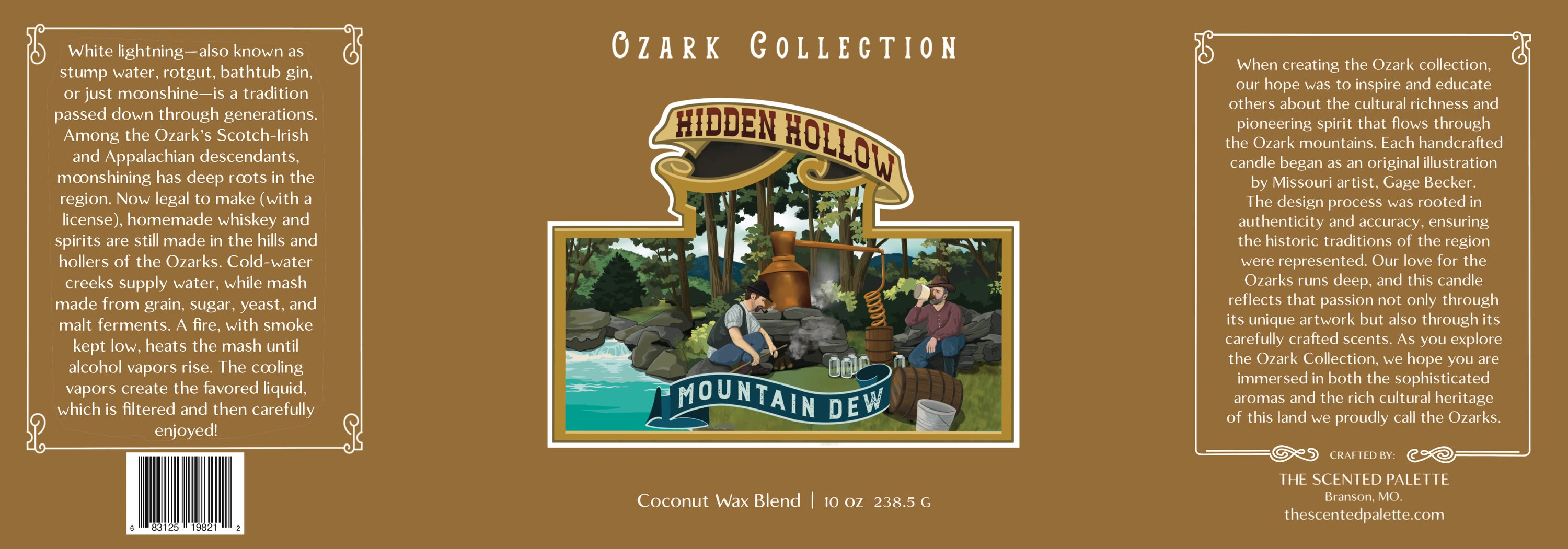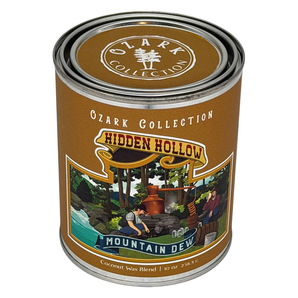 Introducing Mountain Dew with top notes of Vanilla and middle notes of Lavender. The base notes of Smokey, Woodsy, and Musk create a unique scent that will transport you to a moonlit night of sipping moonshine by the campfire. Get lit with this quirky and playful candle!