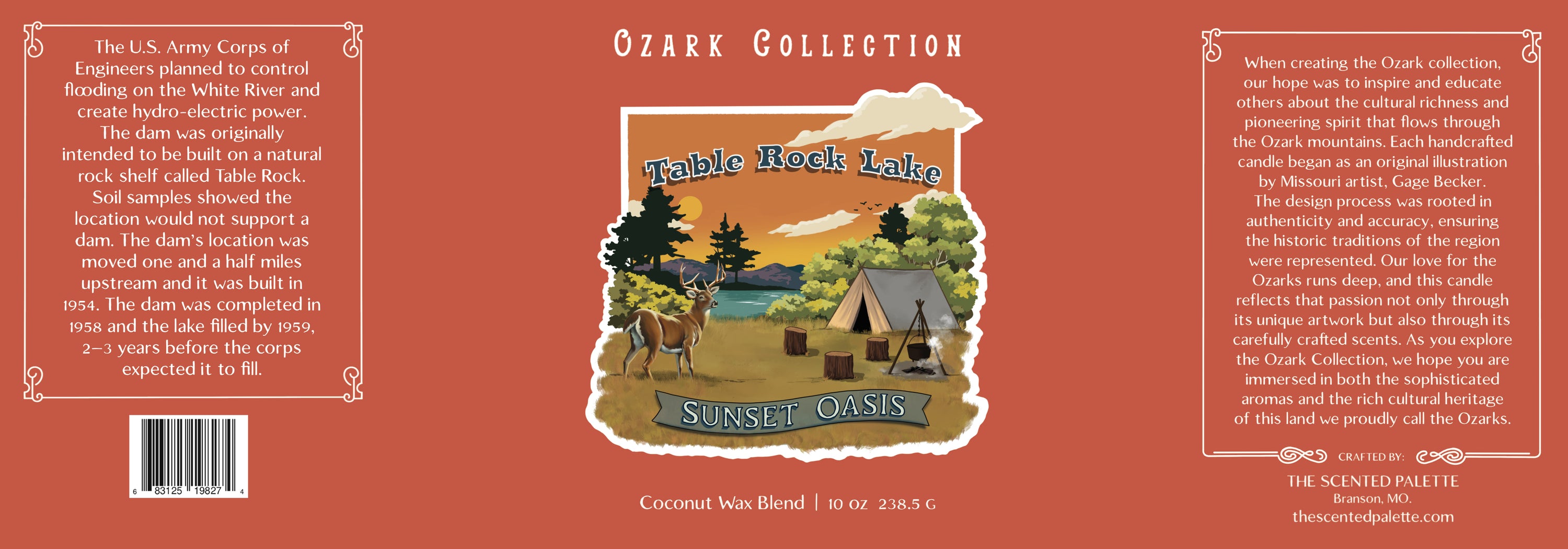 Each candle features original artwork created by a local Ozark Mountain artist and is handmade in small batches by our founder, who personally develops every fragrance blend.